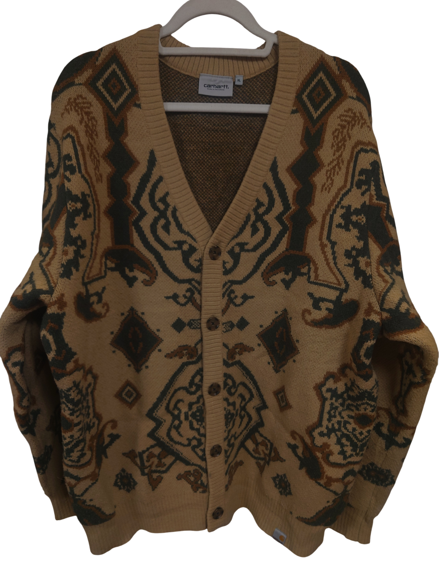CARHARTT 総柄カーディガン XL ベージュ ネイティブ BIGSIZE USED商品