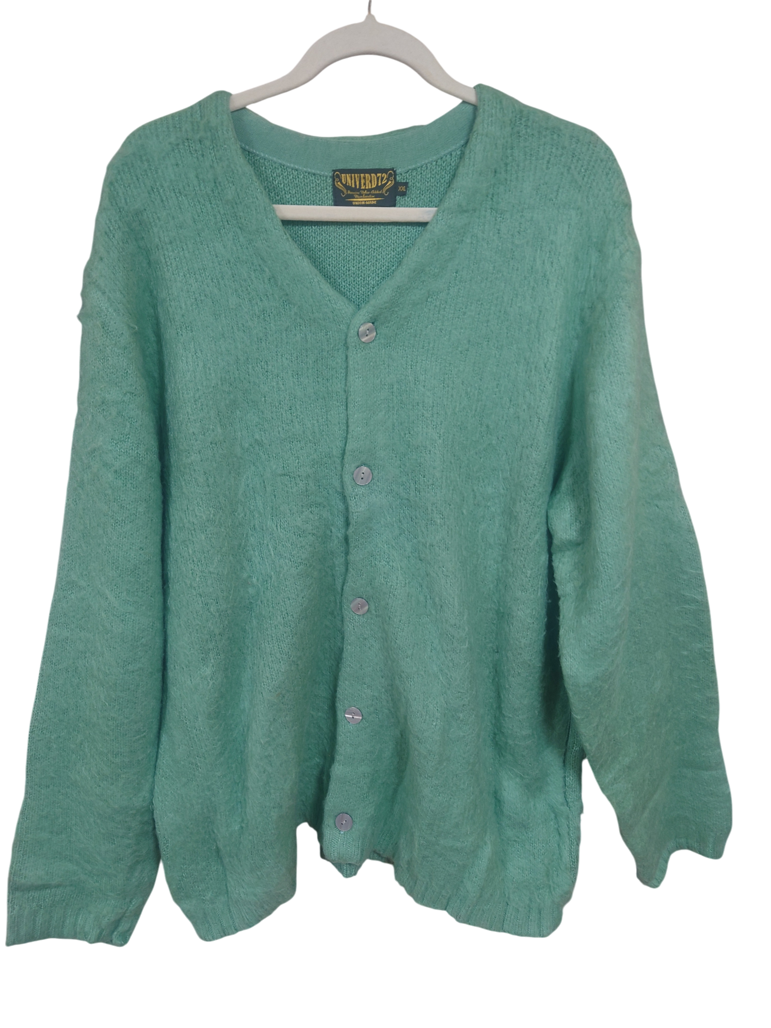 UNIVERD72 モヘアカーディガン XXL ミント、ブラウン BIGSIZE USED商品