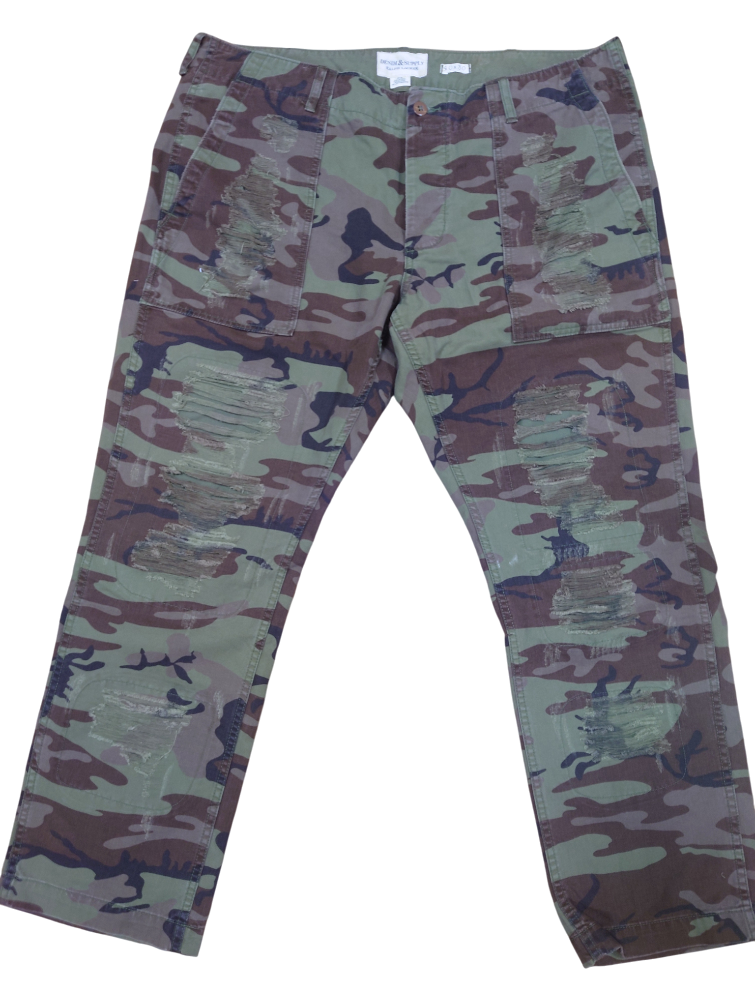 DENIM&SUPPLY 迷彩ダメージパンツ W40L30 リザードカモ BIG SIZE USED