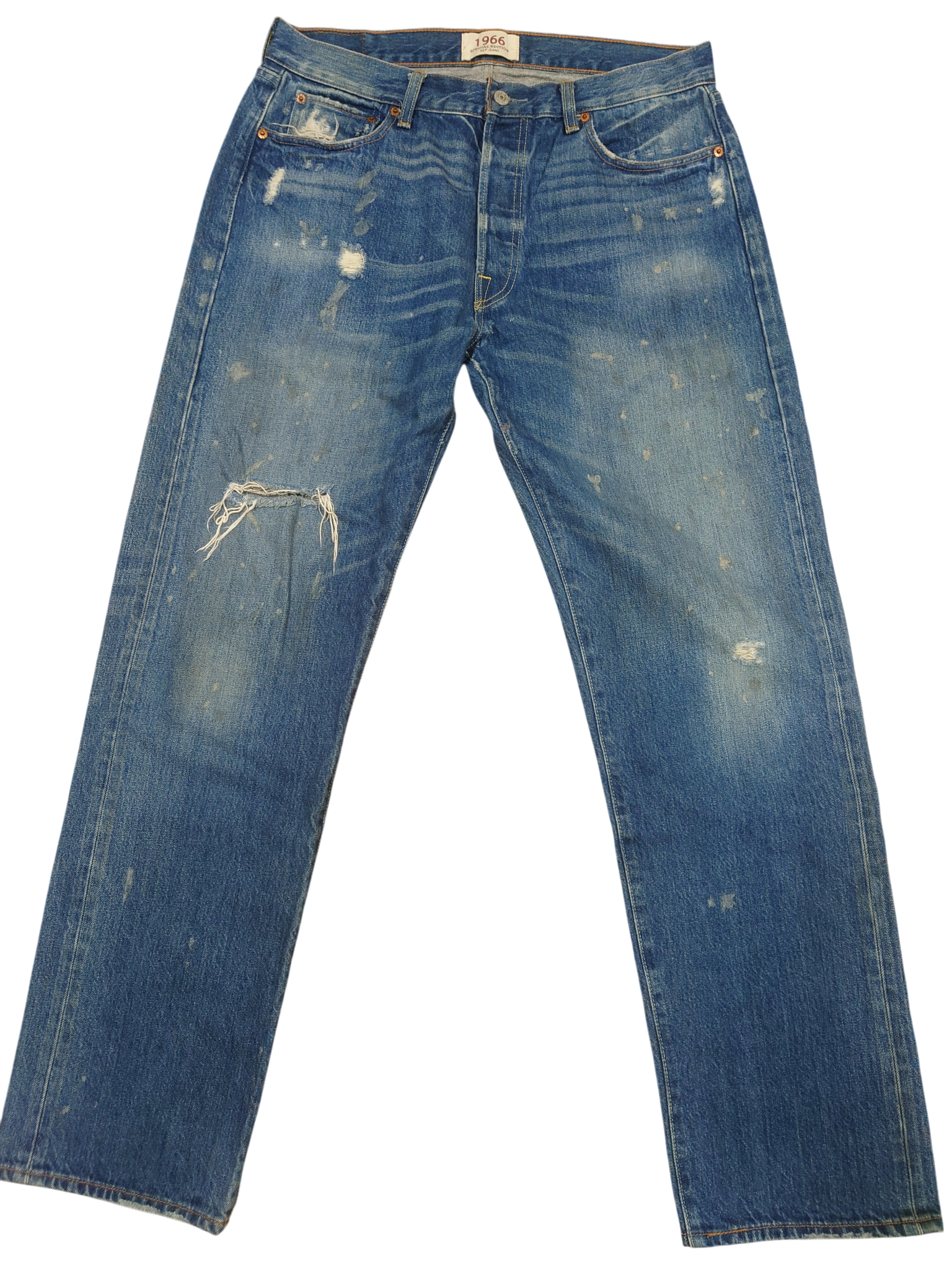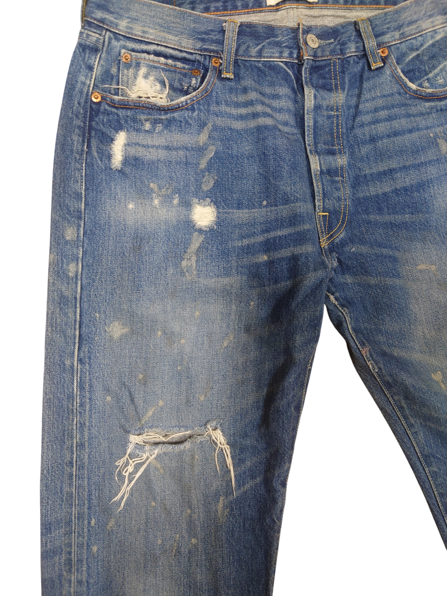LEVI'S ダメージデニム W34L32 ブルー・ペイント USED商品