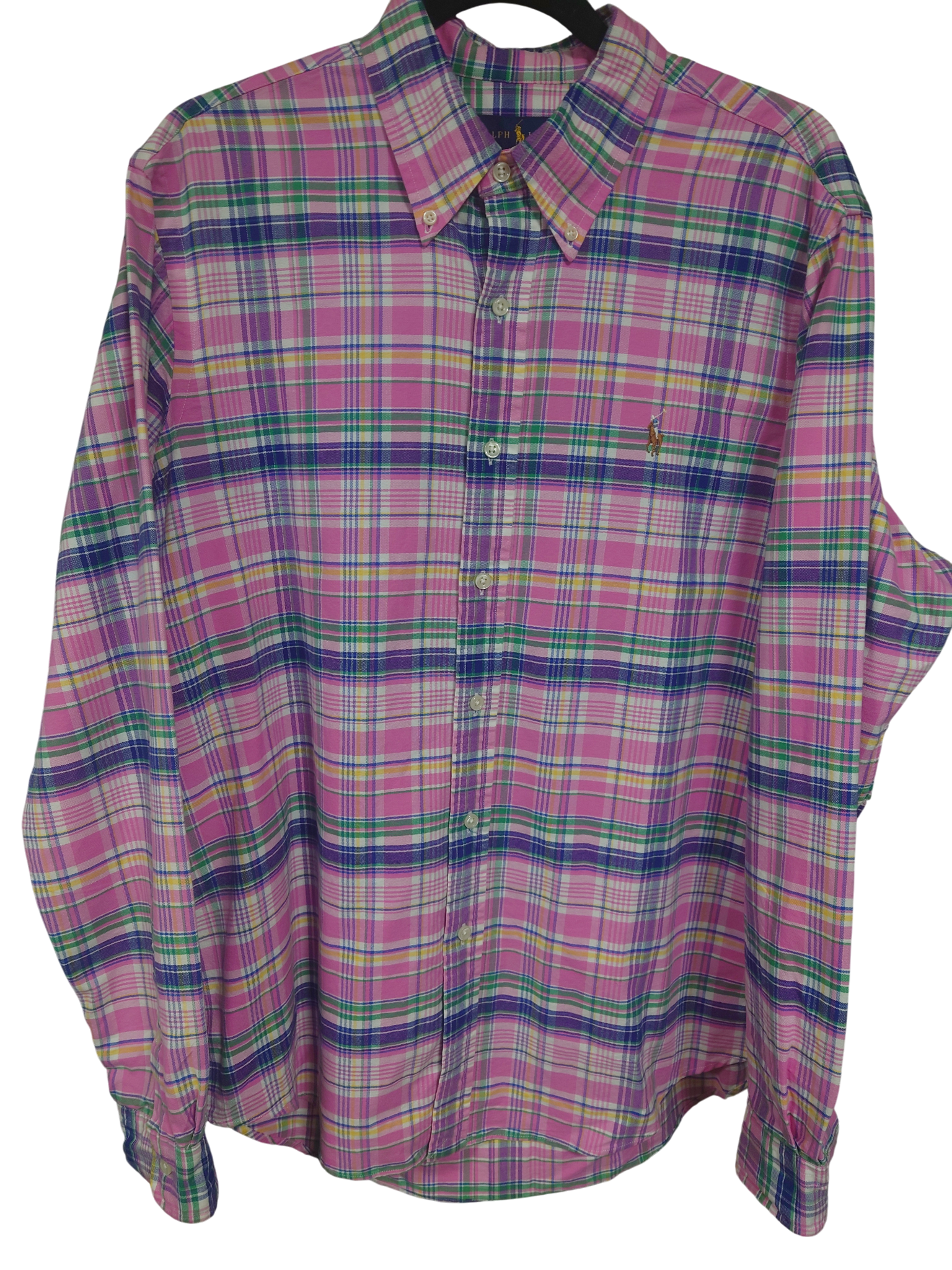 RALPH LAUREN チェックシャツ L ピンク×青 BIGSIZE USED