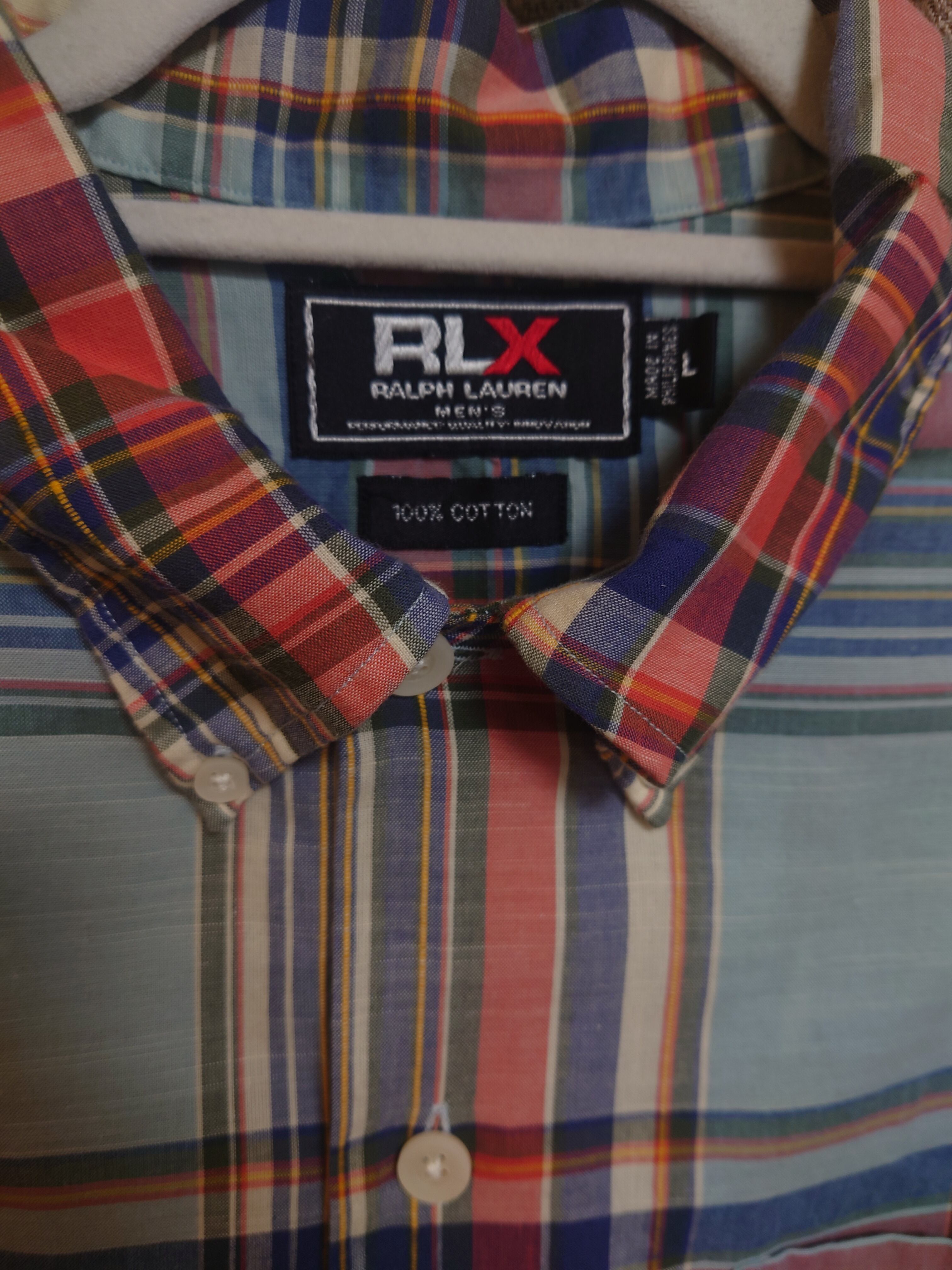 RLX チェックシャツ L 青/赤 USED