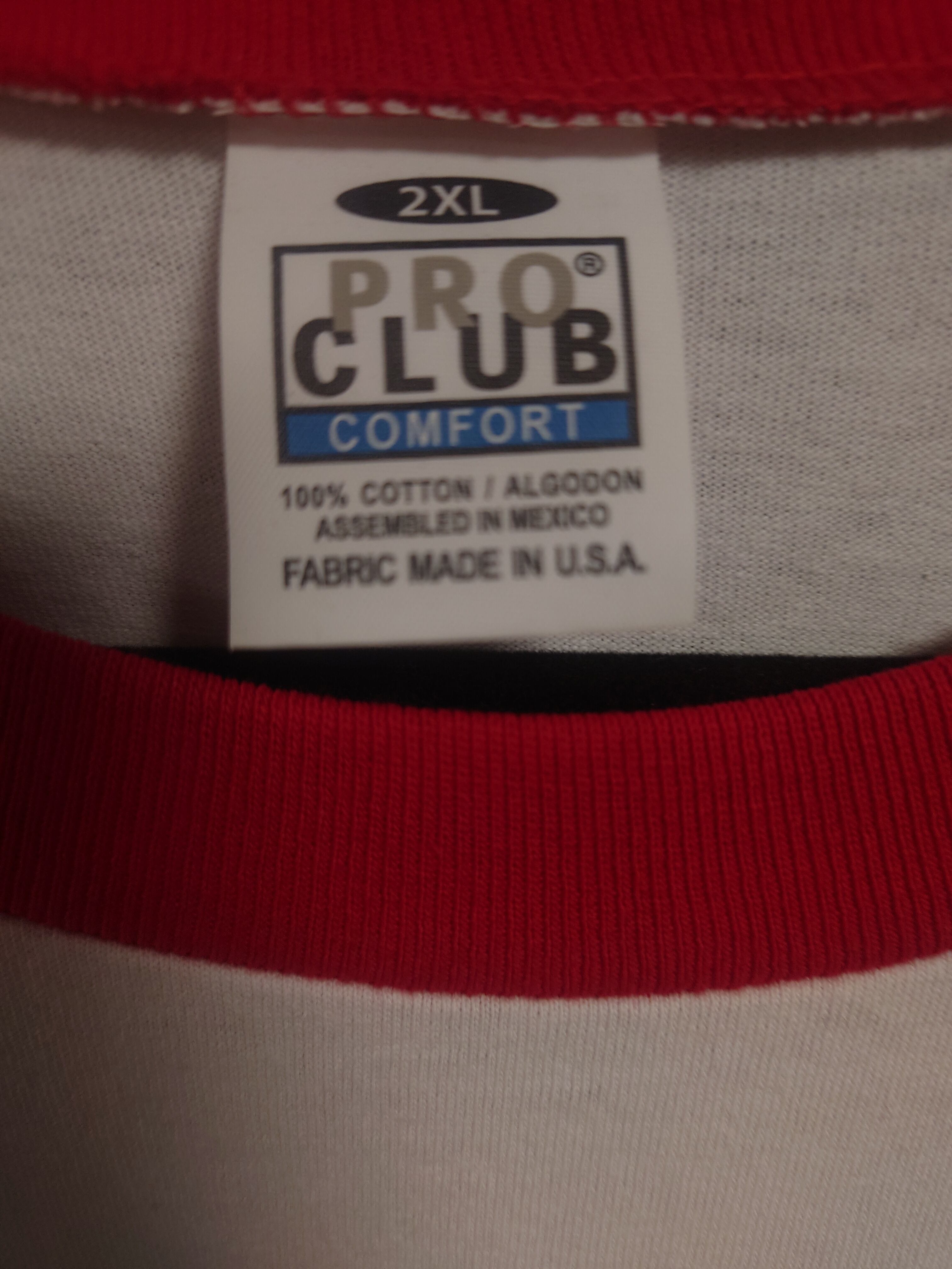 PRO CLUB 七分袖Tシャツ 2XL 白×赤 BIGSIZE USED