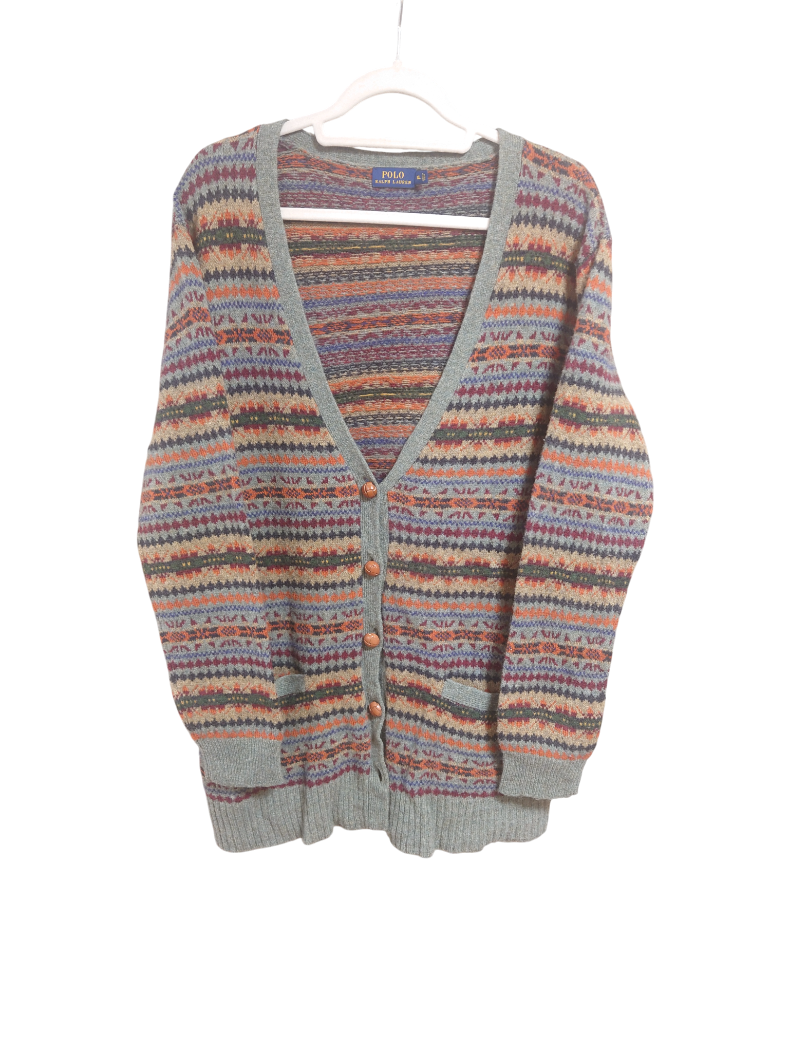POLO RALPH LAUREN カーディガン XL グレイ ネイティブ・クルミボタン USED
