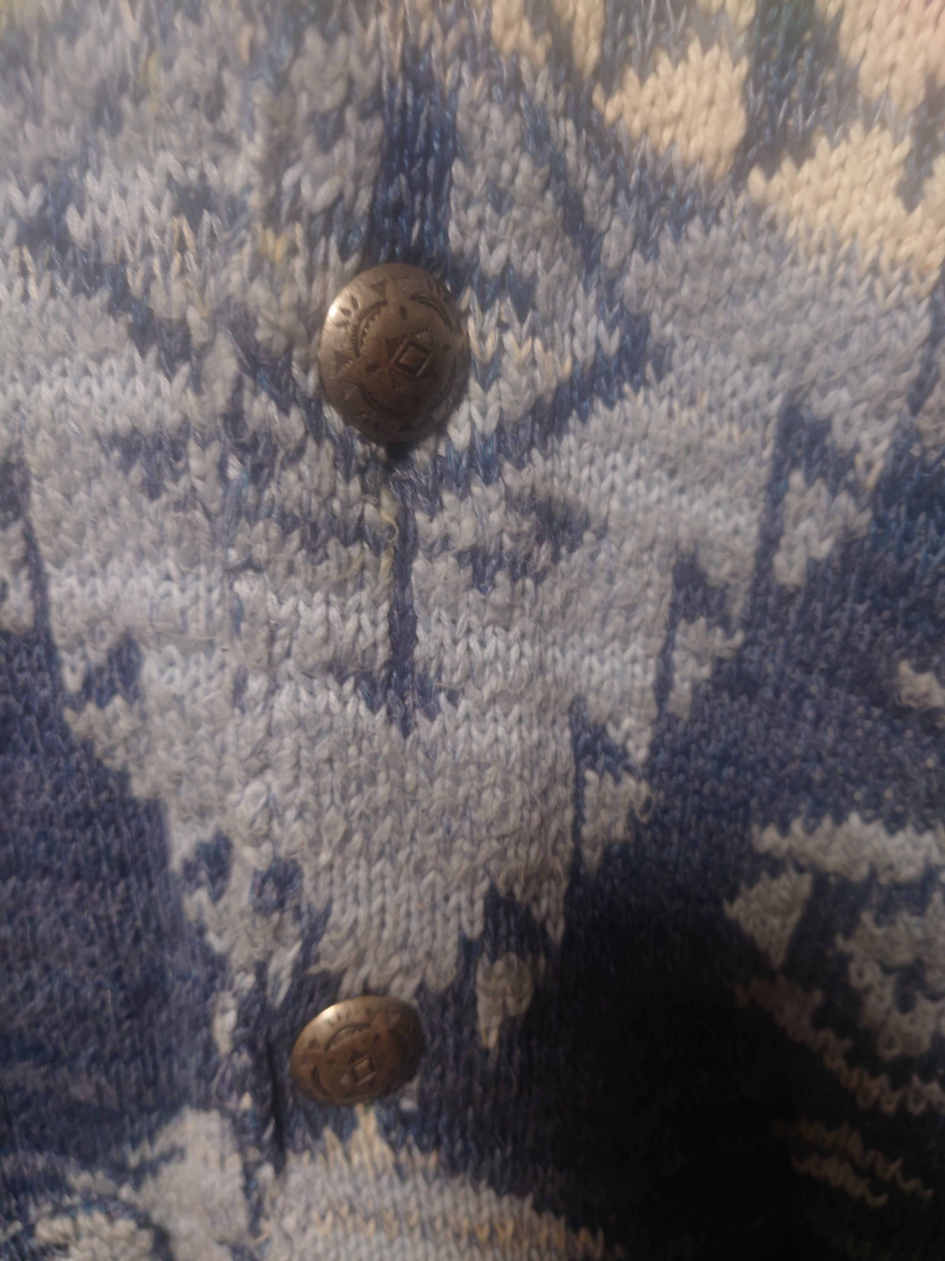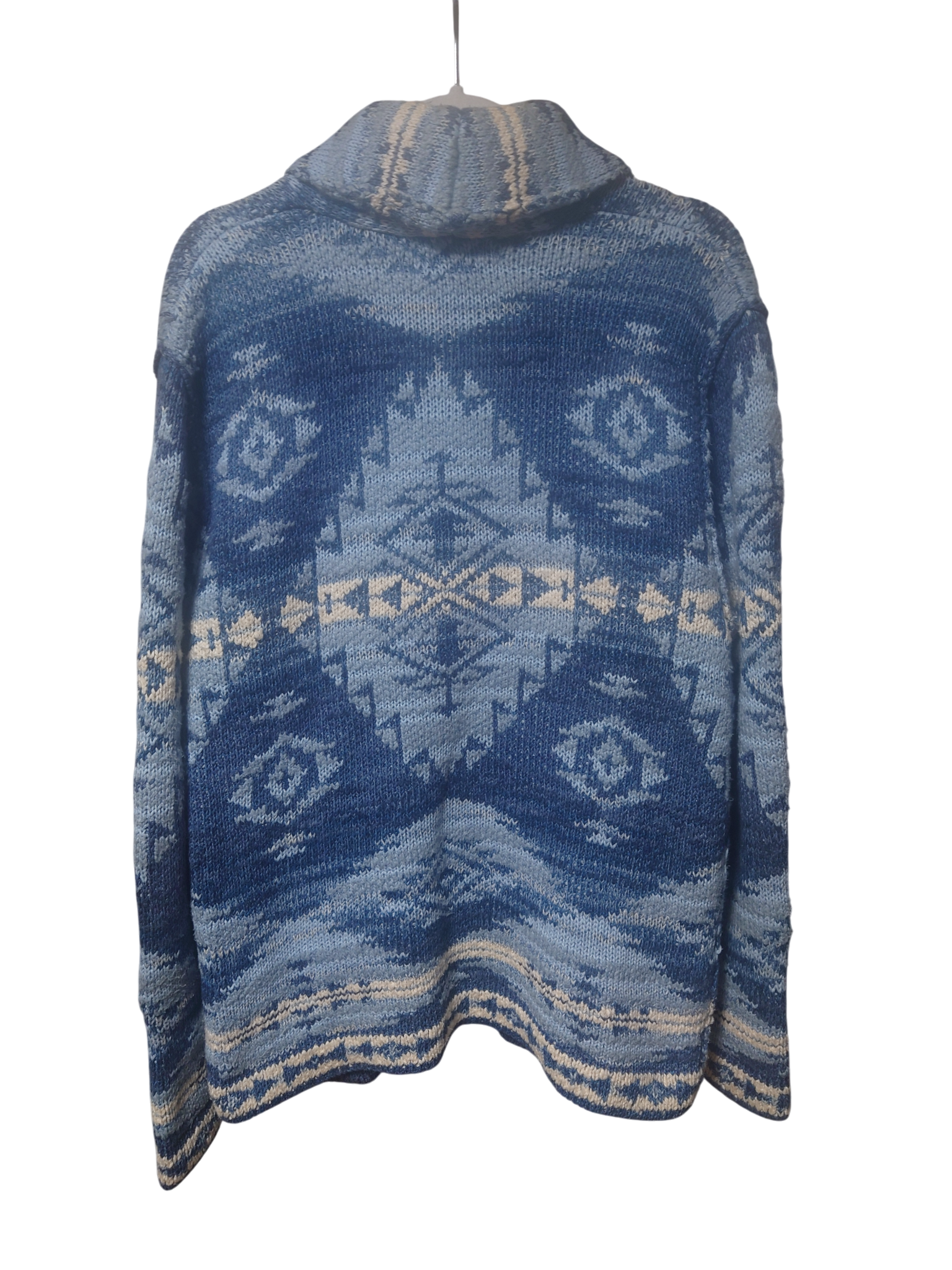 DENIM&SUPPLY カーディガン M 青×白 ネイティブ コンチョボタン USED