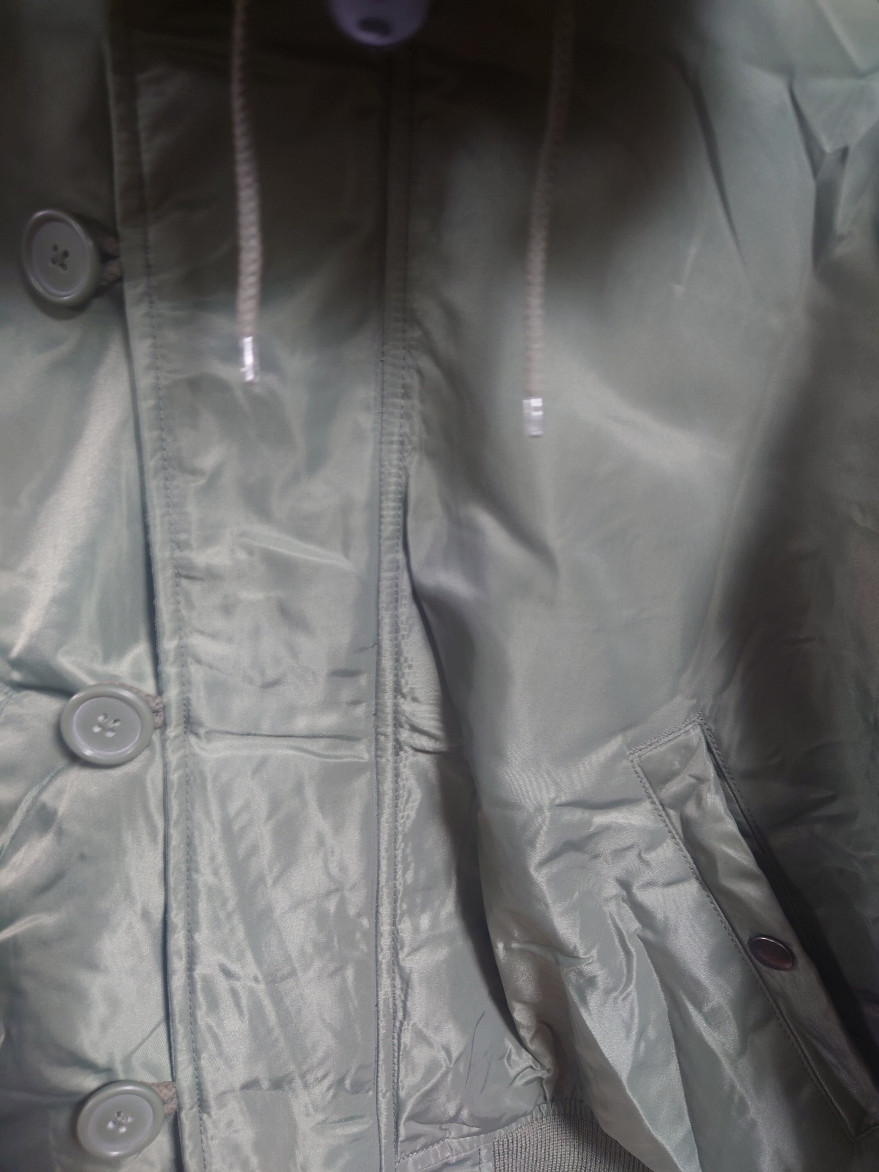 ◎素材: 表地(ナイロン100%)裏地(ポリエステル100%)中わた(ポリエステル)リブ部分(アクリル70%毛30%)フード裏(アクリル50%ポリエステル50%)ファー部分(記載消え)