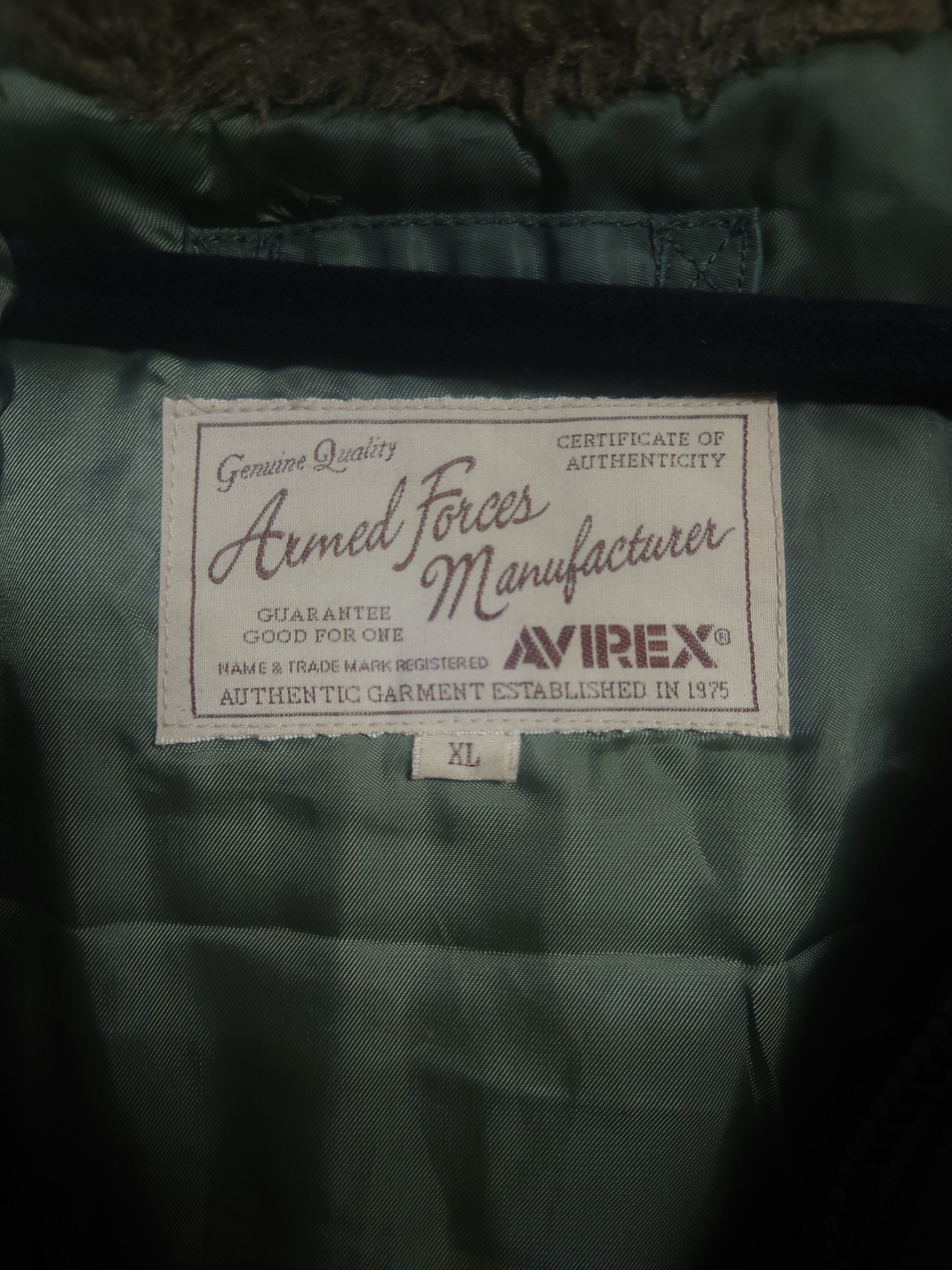 AVIREX N-2Bミリタリージャケット XL OLIVE USED