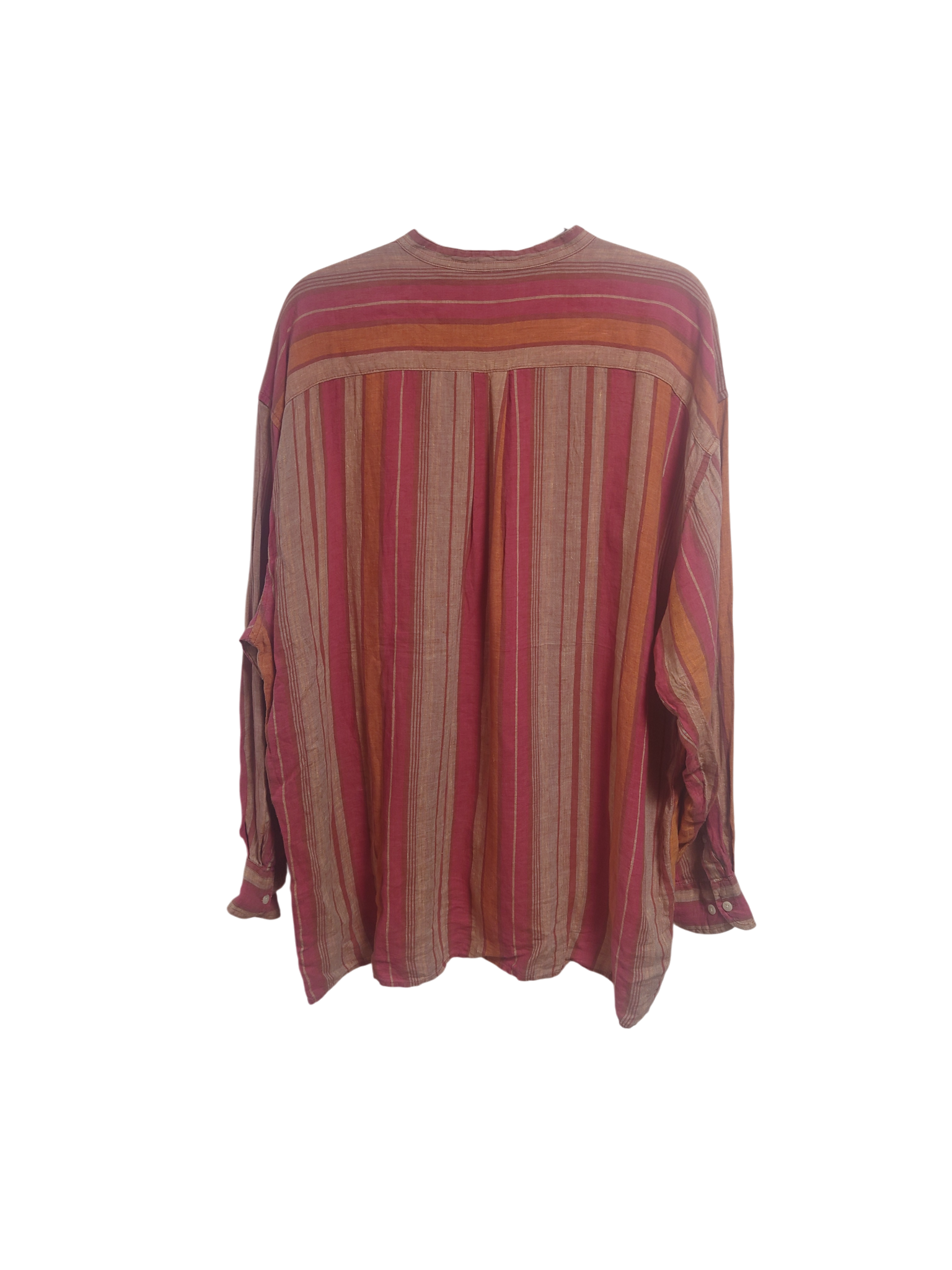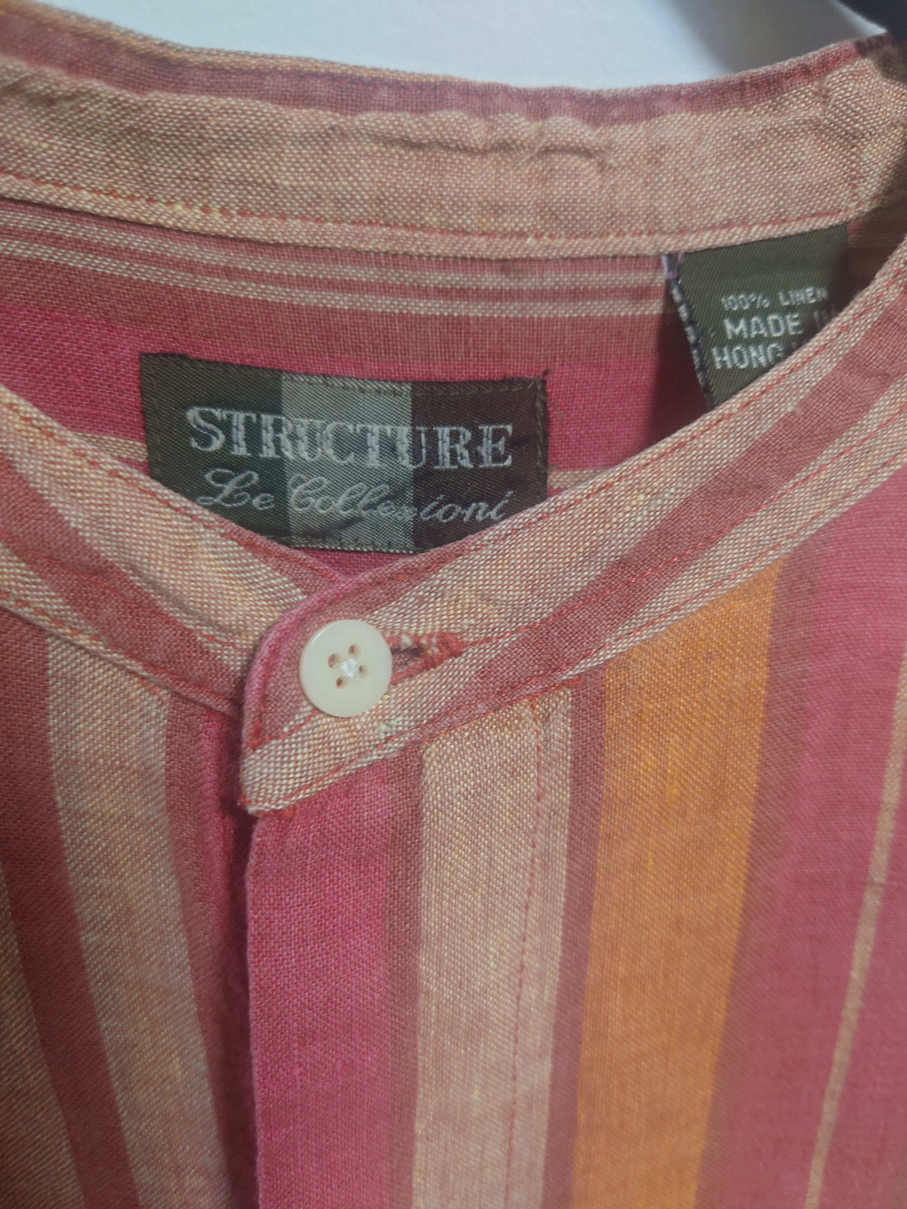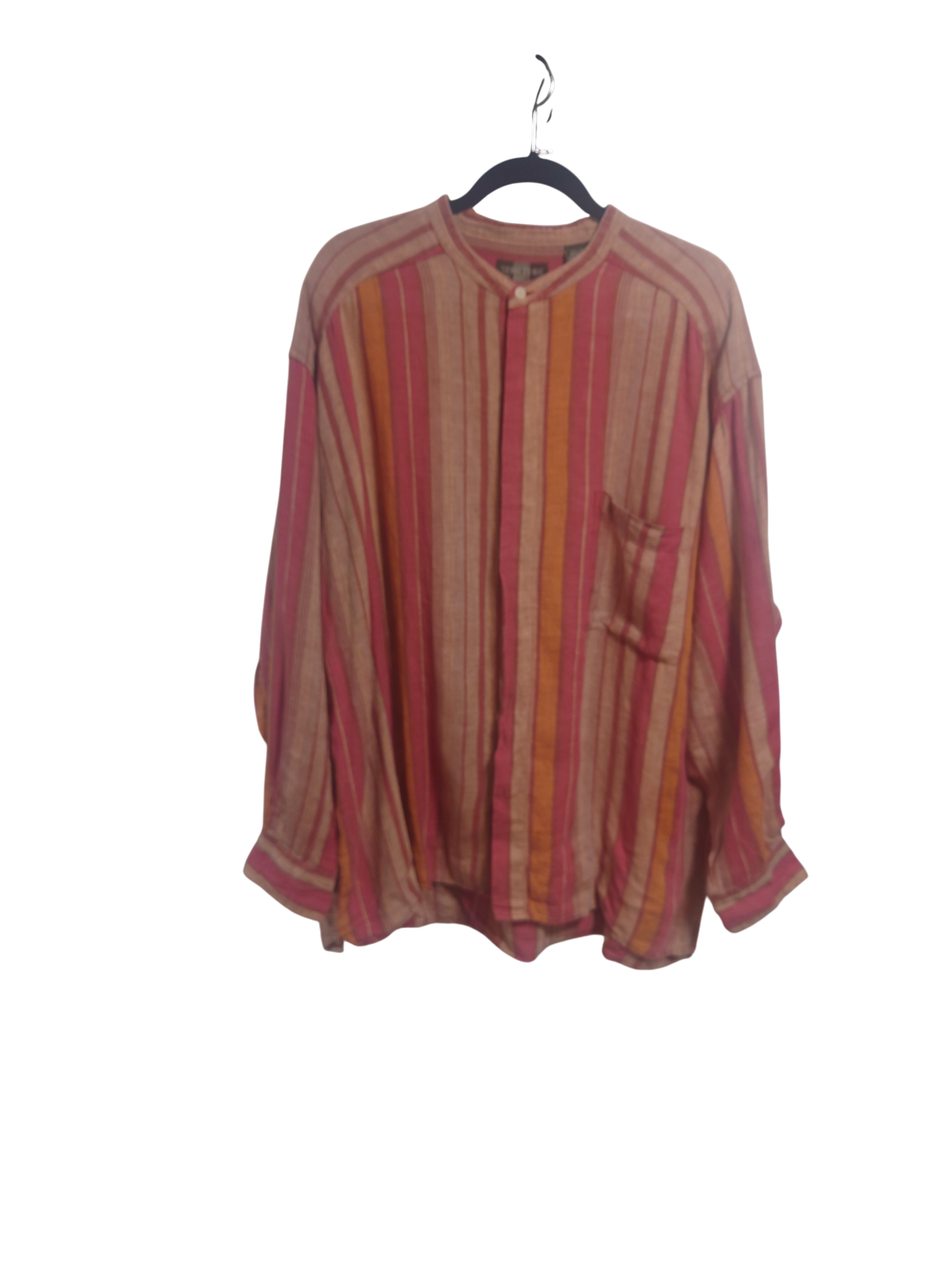 STRUCTURE リネンシャツ XL オレンジ×青 ネイティブ スタンドカラー BIGSIZE USED