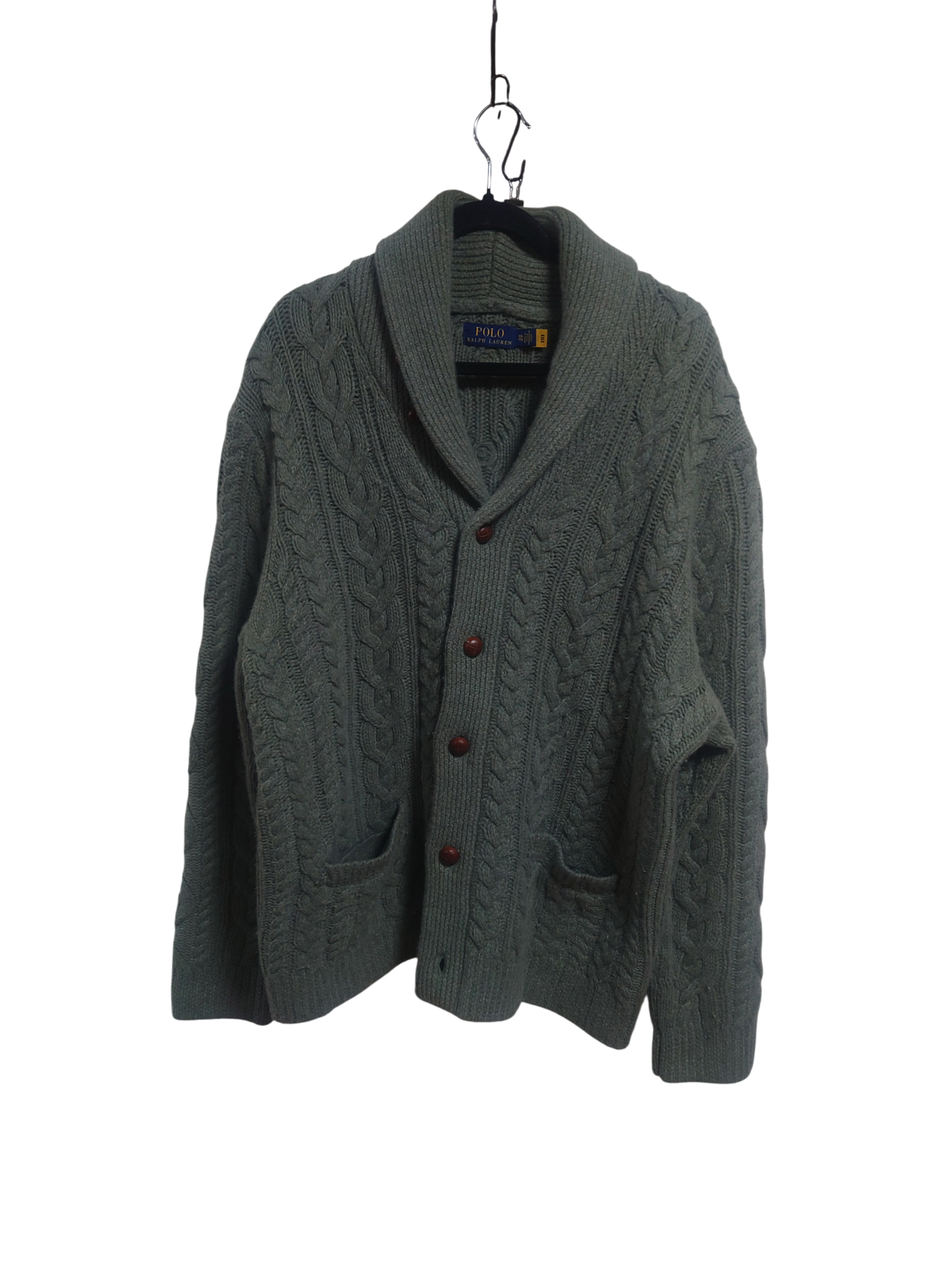 POLO RALPH LAUREN カーディガン XXL オリーブ・クルミボタン BIGSIZE USED