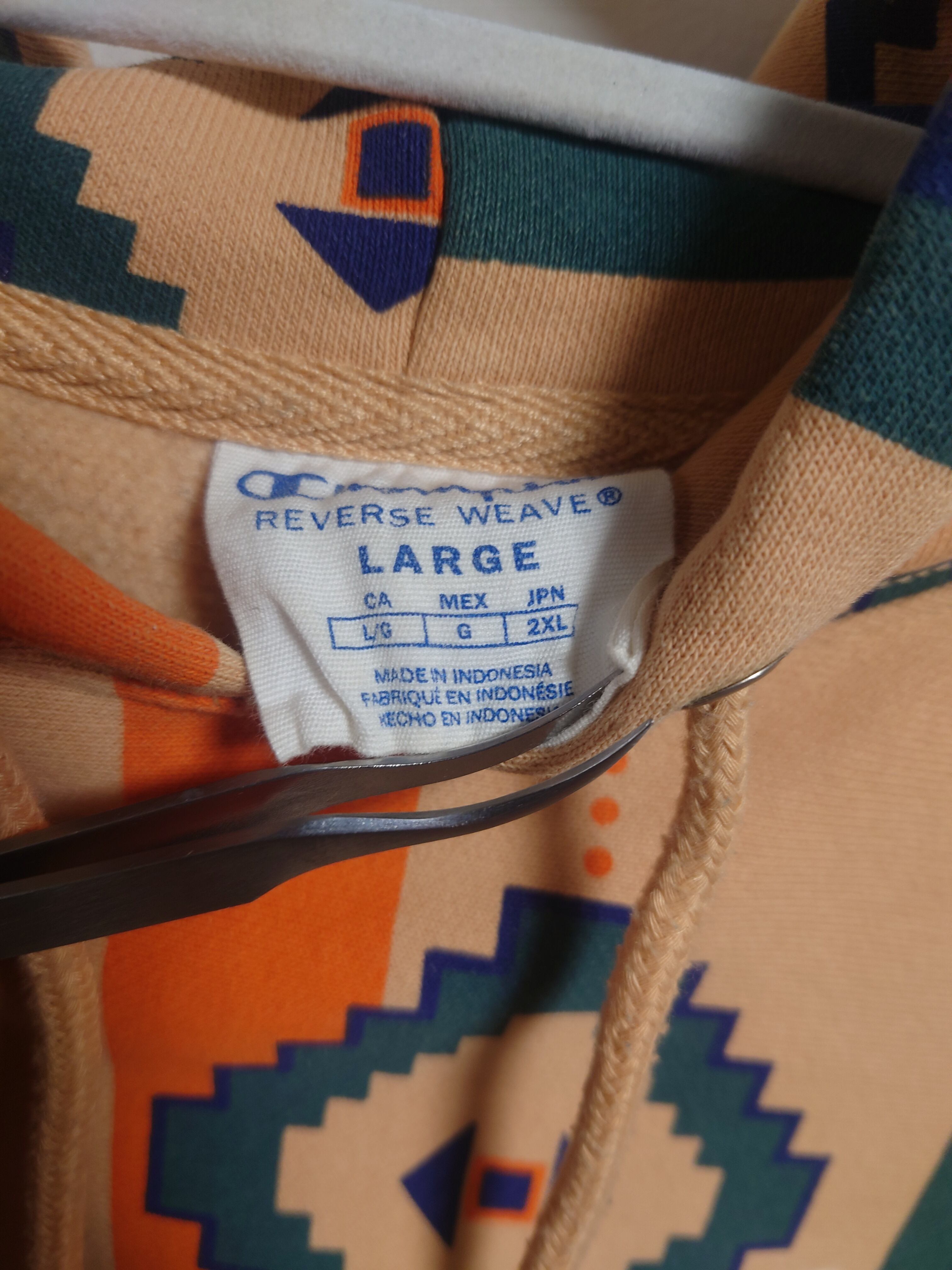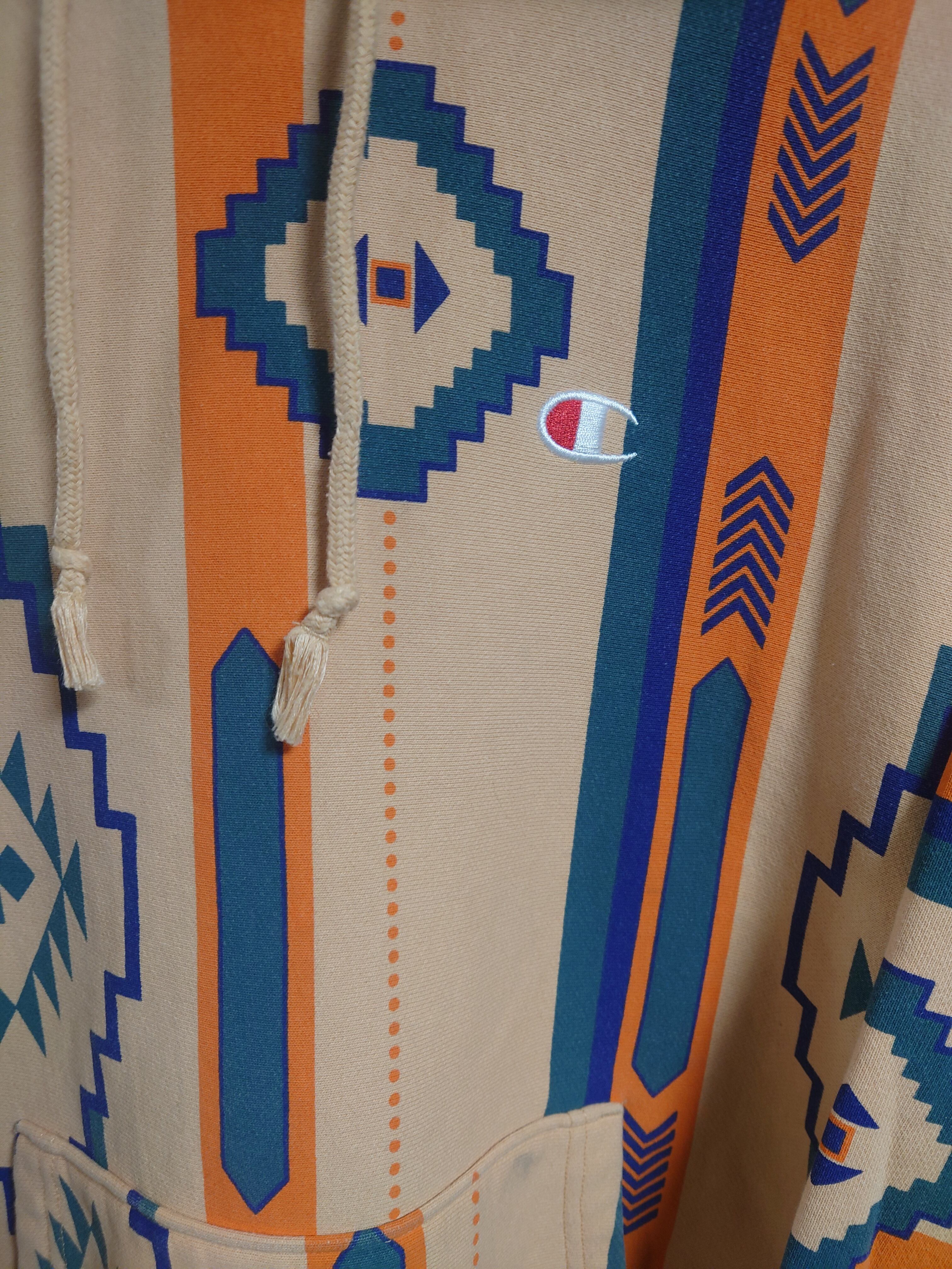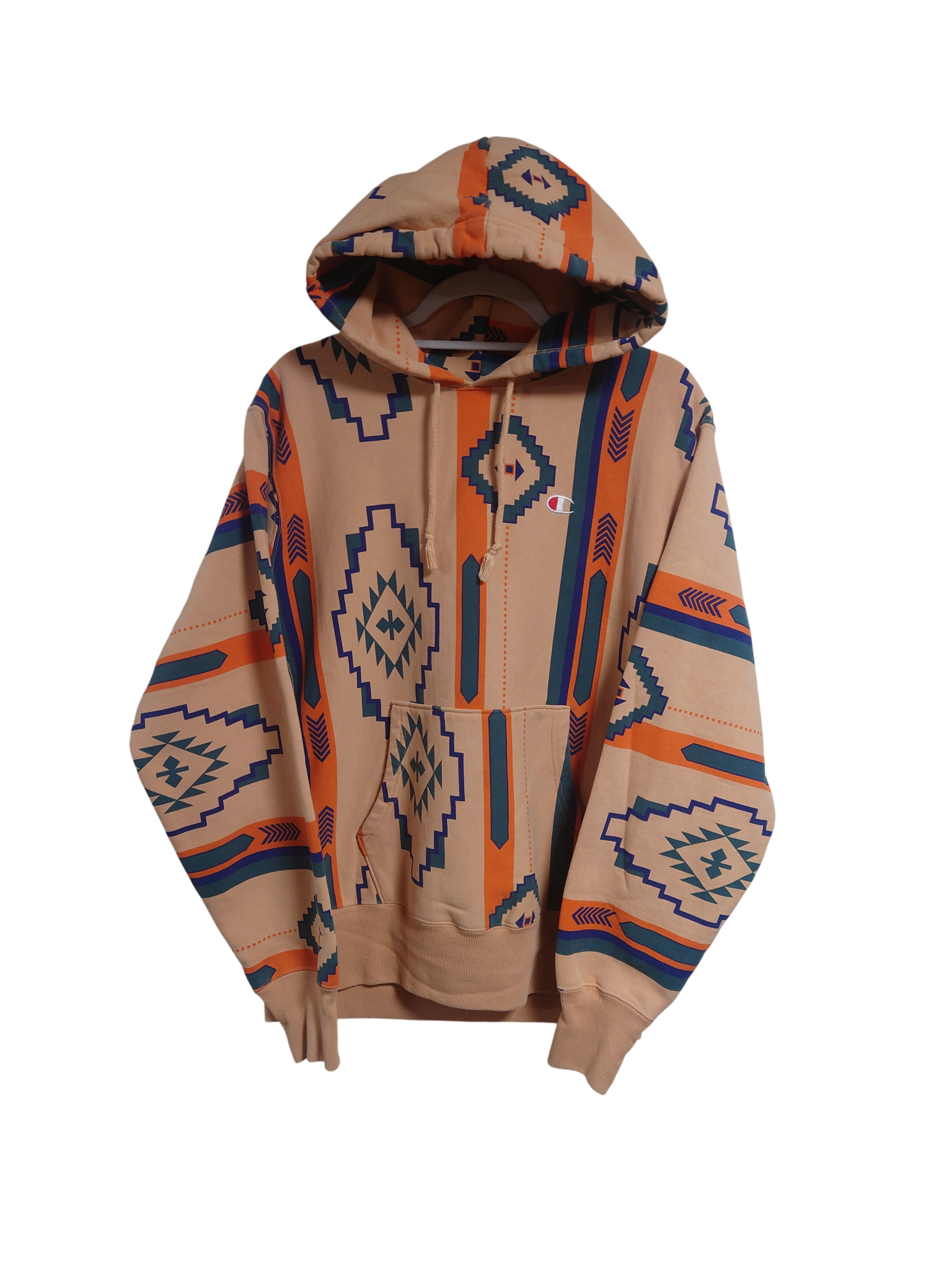 CHAMPION ネイティブ柄フーディ L ベージュ USED